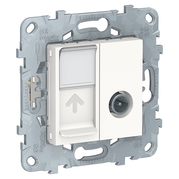 Розетка RJ45 категория 6 и TV Schneider Electric UNICA NEW (белый) одиночная. - Привлекательный внешний вид. - Сокращение времени монтажа. - Термопластик АBS, устойчивый к УФ излучениям.
