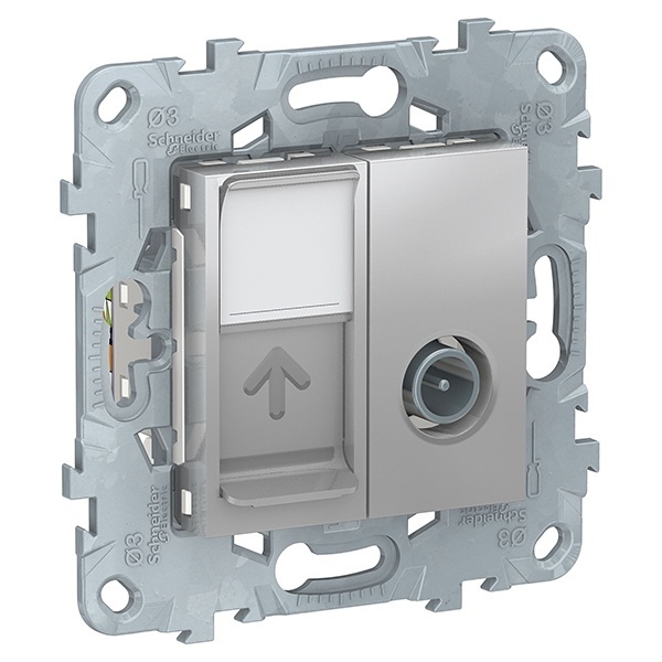 Розетка RJ45 категория 6 и TV Schneider Electric UNICA NEW (алюминий) одиночная. - Привлекательный внешний вид. - Сокращение времени монтажа. - Термопластик АBS, устойчивый к УФ излучениям.