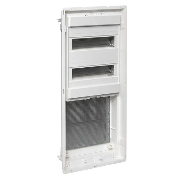 Электрощит для силового и слаботочного оборудования скрытой установки с металлической вентилируемой дверцей, 2 Дин рейки и 2 монтажных панели nv-cb-pmd-2+2