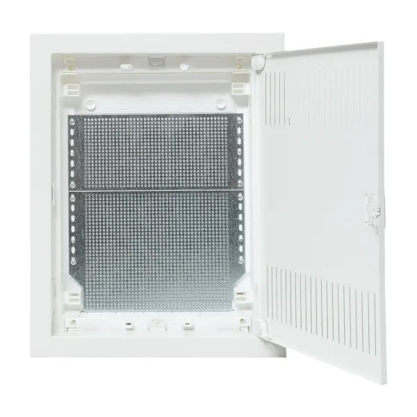 Белый пластиковый шкаф для слаботочного оборудования, скрытой установки с вентилируемой дверью, двухрядный, Нова nv-mb-pmd-2