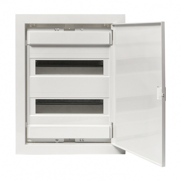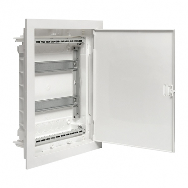 Белый пластиковый электрический шкаф для скрытой установки с глухой дверью, двухрядный на 24 модуля, ЕКФ Проксима. nv-pb-pd-2