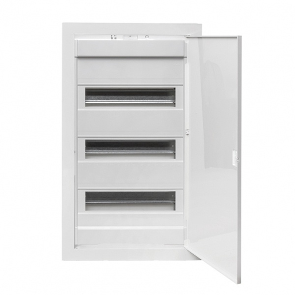 Белый пластиковый электрический шкаф для скрытой установки с глухой дверью, трехрядный на 36 модулей, ЕКФ Проксима. nv-pb-pd-3