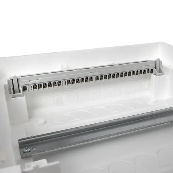 Данная конструкция от компании-производителя EKF PROxima представляет собой основание силового щита из серии «Nova». Оно используется для сборки шкафов распределения электроэнергии. В них устанавливается модульное оборудование. Областью применения выступают многоквартирные жилые дома и частные домостроения. Материалом изготовления корпуса является качественный пластик со степенью ударопрочности IK08. Цвет исполнения – белый. Для окончательной сборки корпуса дополнительно приобретается дверь необходимого размера и материала на выбор: пластика, металла или металла с перфорацией. Данная модель имеет типоразмер 2 и следующие параметры: 398х305х87 мм. Она обладает встраиваемым типом установки и монтируется как в гипсокартон, так и в бетонные или кирпичные стены. Основание оснащено din-рейками, на которые можно установить модульное оборудование в количестве 24 единиц+4 дополнительных в 2 ряда. Номинальное напряжение для встраиваемой аппаратуры составляет 230/400 Вольт, а нагрузка тока достигает 63 Ампер. Глубина ниши должна иметь параметры: 401х313х90 мм. Степень защиты составляет IP40, климатическое исполнение УХЛ3, температура окружающей среды находится в диапазоне от -25 до +60 градусов Цельсия. В комплект с основанием входят: шины 7+7+8 N и 15 PE, пластрон и 2 съемных фланца, 4 монтажные пластины, 4 комплекта монтажа для полых стен, 2 крепления пластрона, заглушка пластрона на 6 модулей, модульная наклейка и паспорт.