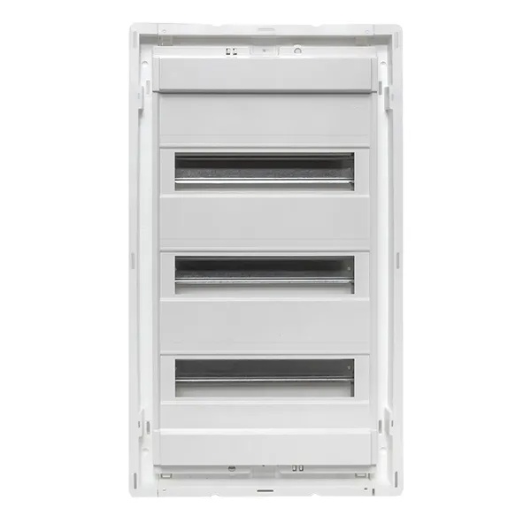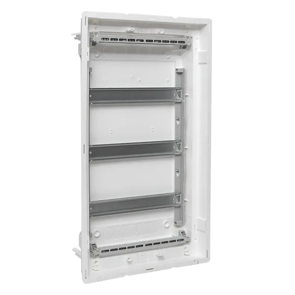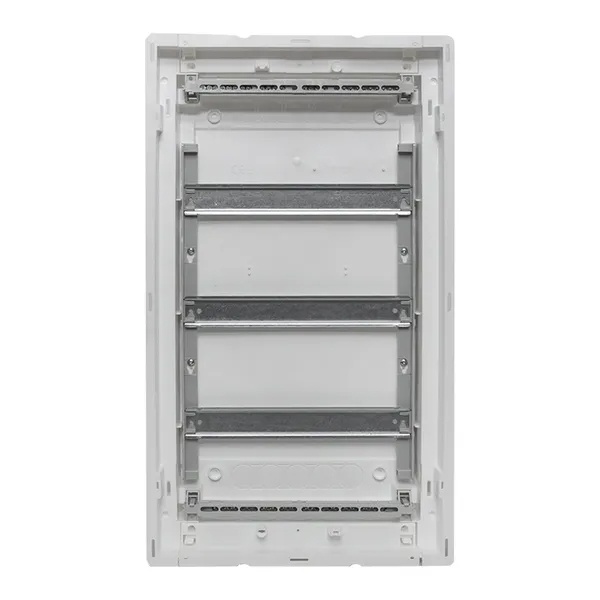Компания EKF PROxima представляет основание для сборки силового щита из линейки «Nova». Эта модель с типоразмером 3 используется для сборки силовых распределительных шкафов. Установленное в них модульные приборы коммутируют и защищают кабельные линии и подключенные нагрузки. Корпус содержит 3 DIN-рейки, на которые монтируется различное модульное оборудование. На одной рейки допускается размещение до 12+2 единицы аппаратуры, то есть в 3 ряда можно расположить до 42 модулей. Для финальной сборки к основанию дополнительно приобретается дверца соответствующего размера и материала. Это может быть пластик, металл или металл с перфорацией. Сам корпус изготовлен из пластика белого цвета с ударопрочностью IK08 и степенью защиты IP40. Он имеет скрытый тип установки, поэтому требует заранее подготовленного углубления в стене из гипсокартона, кирпича или бетона. Для данного основания необходимы следующие параметры ниши: 554х313х90 мм. Номинальная нагрузка тока встраиваемых устройств составляет 63 Ампера при напряжении сети 230/400 Вольт. Климатическое исполнение УХЛ3, температура окружающей среды допускает диапазон от -25 до +60 градусов Цельсия. Основание с дин-рейками комплектуется паспортом, шинами 8+4+4+10 N и 26 PE, пластроном и 2 съемными фланцами, заглушкой пластрона на 6 модулей, 2 креплениями пластрона, 4 монтажными пластинами, 4 комплектами монтажа для полых стен, модульной наклейкой. Сферой использования выступают многоквартирные жилые дома и частные домостроения.