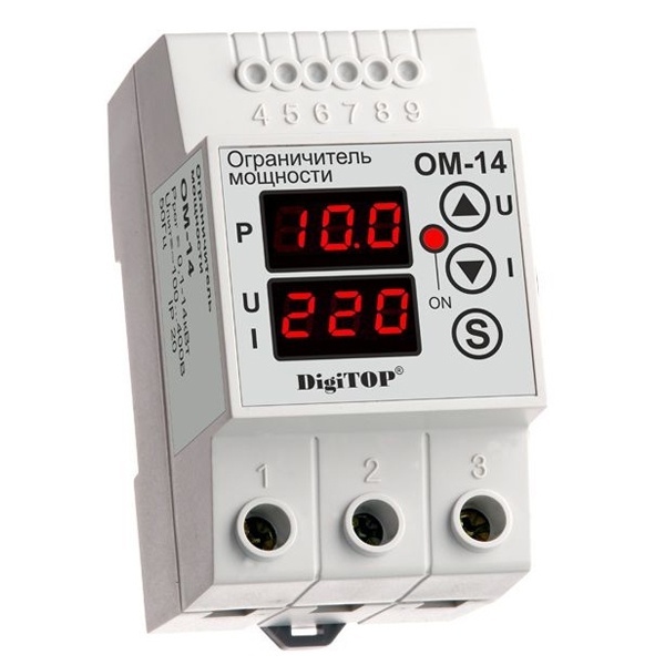 Ограничитель мощности предназначен для контроля потребляемой мощности в однофазной электрической сети и оснащен функцией реле напряжения, параметры которого (верхний и нижний пределы отключения по напряжению) так же устанавливаются пользователем.
