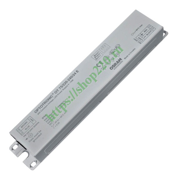 Блок питания Osram Optotronic для светодиодов мощностью 75 Ватт на 24 Вольт размерами 241х43х30 мм и степенью защиты IP64 4008321362476
