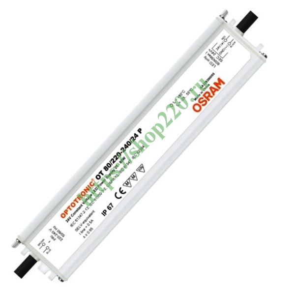 Блок питания Osram Optotronic для светодиодов мощностью 80 Ватт на 24 Вольт размерами 250х50х34 мм и степенью защиты IP67 4008321981684