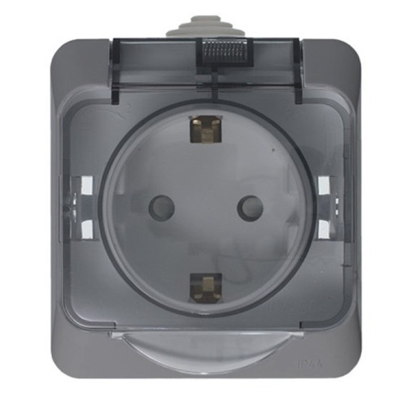 ЭТЮД IP44 O/У РОЗЕТКА с заземлением со шторками 16А 250B, СЕРЫЙ, Россия