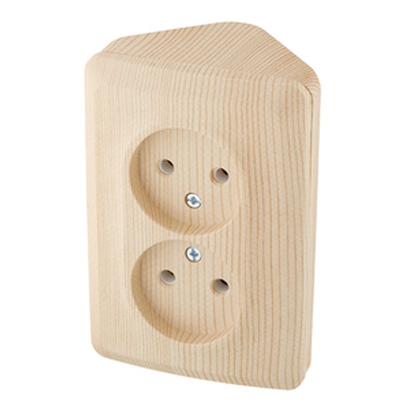 Розетка Schneider Electric ЭТЮД (сосна, открытой установки) двухместная угловая, без шторок и заземления предназначена для применения в сетях до 250В, на ток до 16А. Двухместная розетка позволяет подключить два устройства в одном месте. Ее конструкция позволяет установить розетку в угол помещения. Изделия цвета Сосна обладают уникальным рисунком, напоминающим древесный сруб. Сделано в России.