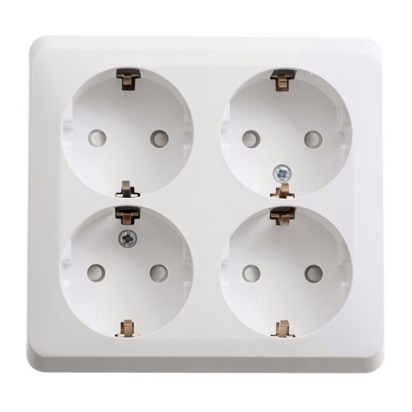 Электрическая внешняя белая розетка Систем четверная силовая 16А электросети 220В IP20 открытой установки на стену PA16-208B