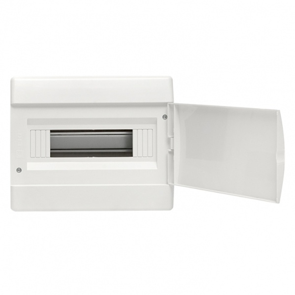 Необходимые параметры ниши: 210х265х72 мм. Особенностью щита является наличие дверцы, что обеспечивает удобный монтаж независимо от положения соседних стен. Дверь из пластика имеет матовый вид белого цвета. В комплект поставки входит DIN-рейка, на которую производится монтаж устройств, а также 2 шины N/PE с 5 отверстиями для подключения нулевого и заземляющего проводника. Подвод кабеля осуществляется снизу сквозь выштампованные кабельные вводы. Распределительный шкаф встраиваемого типа удобен в эксплуатации и придает эстетичный вид, так как занимает минимум пространства. Он используется для размещения в жилых секторах, офисах и производственных цехах.