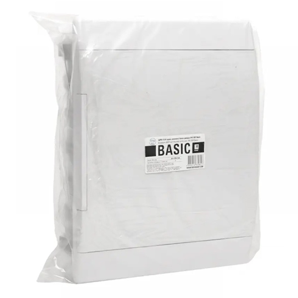 Пластиковый электрощит белого цвета с матовой крышкой скрытой установки, двухрядный на 24 модуля, EKF Basic pb-v-24w-bas