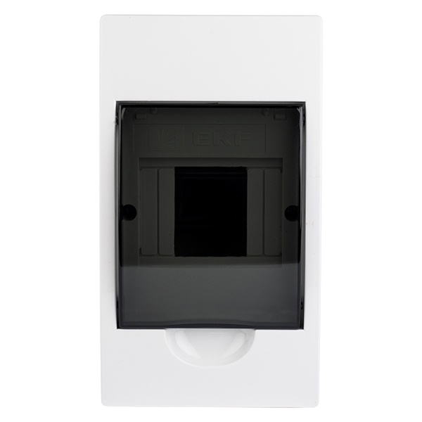 Особенностью щита является наличие дверцы, открывающейся вертикально вверх, что обеспечивает удобный монтаж независимо от положения соседних стен. Дверь из пластика имеет затемненный прозрачный вид, который обеспечивает наглядность за работой аппаратуры. В комплект поставки входит 1 DIN-рейка, на которую производится монтаж устройств. Подключение кабеля осуществляется снизу сквозь выштампованные кабельные вводы. Распределительный щит обладает эргономичным дизайном, удобен и практичен в эксплуатации. Он неприхотлив в обслуживании, поэтому отлично подходит для размещения как в жилом, так и промышленном секторе.