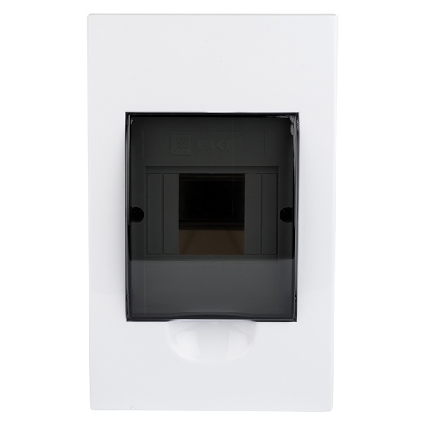 Компактный распределительный шкаф серии ЩРВ от производителя EKF предназначен для размещения модульного оборудования, сборки щитов распределения электроэнергии и защиты сетей от токов перегрузки и короткого замыкания. Он представляет собой конструкцию встраиваемой установки, выполненную из прочного ABS-пластика. Данная модель бокса монтируется в специально подготовленную нишу в кирпичной или бетонной стене и рассчитана на монтаж 4 модульных устройств с номинальной величиной тока 125 Ампер. Установка аппаратуры производится на DIN-рейке, которая входит в комплект поставки. Степень защиты от попадания влаги и пыли внутрь корпуса составляет IP41. Климатическое исполнение, при котором допускается эксплуатация щита, соответствует УХЛ3: от -60 до +40 градусов.