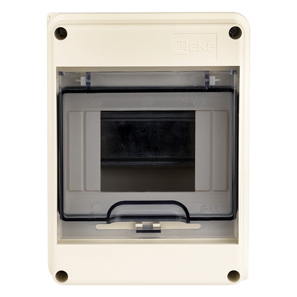 Распределительный щит ЩРН от известной компании EKF представляет собой компактную конструкцию с установкой навесного типа, которая служит оболочкой для сборки различного модульного оборудования, устройств управления, таймеров и УЗО. Данная модель бокса относится к герметичной серии корпусов, поэтому сферой использования являются помещения с повышенным уровнем пыли и влаги, подвалы, гаражи и производственные цеха. Материалом корпуса и двери служит прочный ABS-пластик, обеспечивающий надежную степень защиты IP65. Корпус имеет светло-серый оттенок под номером RAL 7035, а дверца в дымчатом варианте обеспечивает наблюдение за работой встроенной аппаратуры. Она открывается вертикально вверх и позволяет размещать распределительный щит в углу помещения. Внутреннее пространство оснащено DIN-рейкой, а также медными шинами N и PE в количестве 2 единиц с 3-мя отверстиями для подключения нулевого и заземляющего проводника. Навесной шкаф рассчитан на установку 5 модулей с номинальной величиной тока до 125 Ампер.