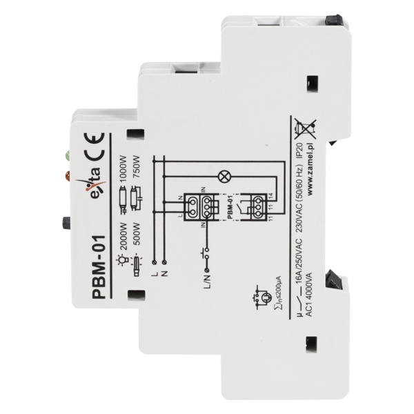 Бистабильное реле PBM-01 предназначено для управленияосвещением или другим устройством при помощи параллельно подключенных однополюсных кнопок. Очередные нажатия любой из кнопок вызывают включение или выключение устройств, подключенных к выходным зажимам. Применение системы предоставляет возможность создания «интеллигентных» систем управления освещением.