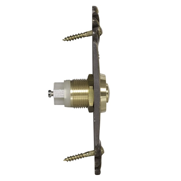 Предлагаемое здесь изделие бренда, выполнено в лучших традициях ретро-стиля. Продукт выполнен из качественной меди, в виде вертикально удлиненного основания, завершающегося с обеих сторон ажурным трехлистником. Внутренняя часть накладки включает отполированный круг с установленной по центру кнопкой, окаймленный сверху и снизу овальными вставками с элементами чеканки. Накладка предполагает возможность размещения адресной таблички.
