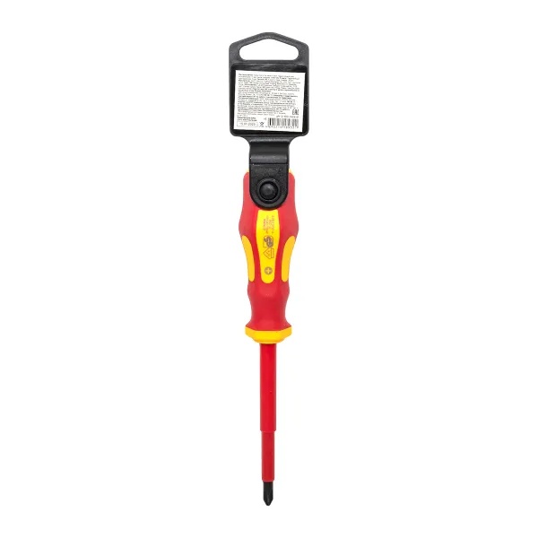 Диэлектрическая отвертка предназначена для работы с крепежом, который используется в электротехнических устройствах, находящихся под напряжением. Благодаря специальному изоляционному покрытию, исключается риск поражения пользователя током, даже когда напряжение достигает 1000 В.