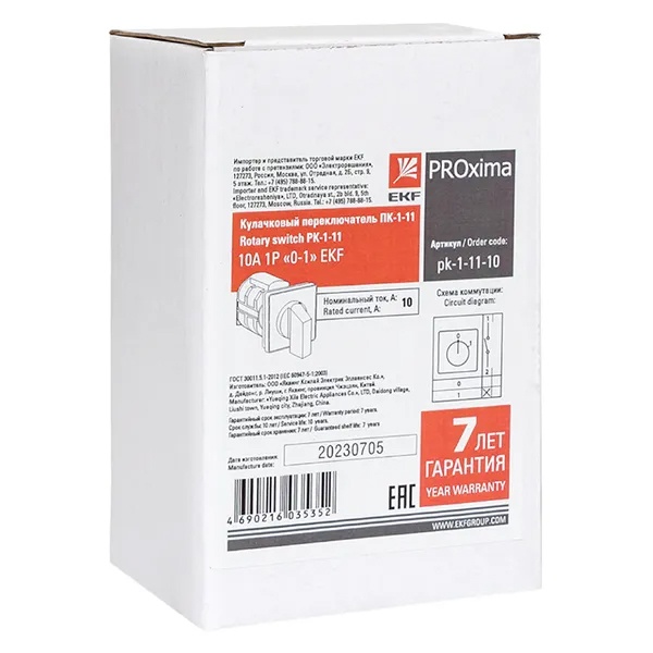 Переключатель кулачковый EKF ПК-1-11 10А 1P 0-1 IP20 pk-1-11-10
