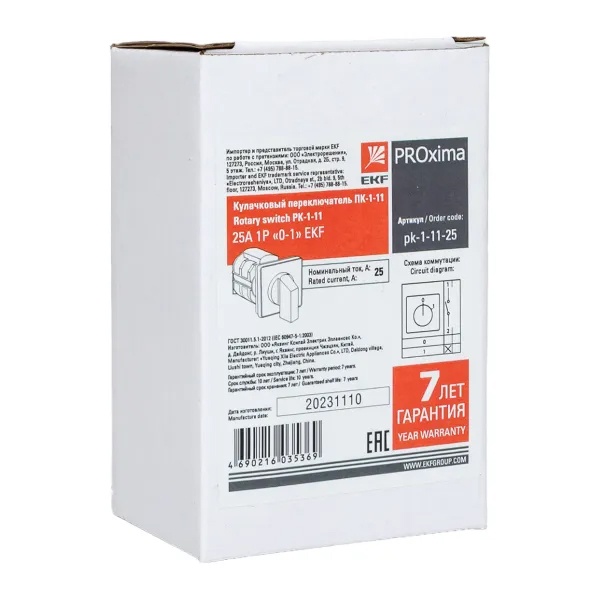 Переключатель кулачковый EKF ПК-1-11 25А 1P 0-1 IP20 pk-1-11-25