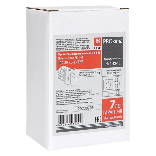 Кулачковые переключатели серии ПК EKF PROxima — это механические коммутационные устройства, предназначенные для работы в цепях переменного тока с номинальным напряжением до 400 В и частотой 50/60 Гц. Их конструкция обеспечивает надежность и устойчивость к внешним воздействиям благодаря контактам с повышенным содержанием серебра, что снижает переходное сопротивление.