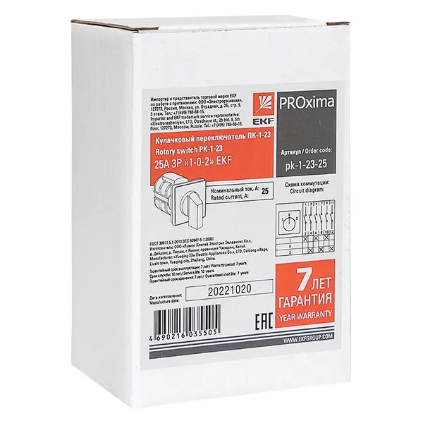 Переключатель кулачковый EKF ПК-1-23 25А 3P 1-0-2 IP20 pk-1-23-25