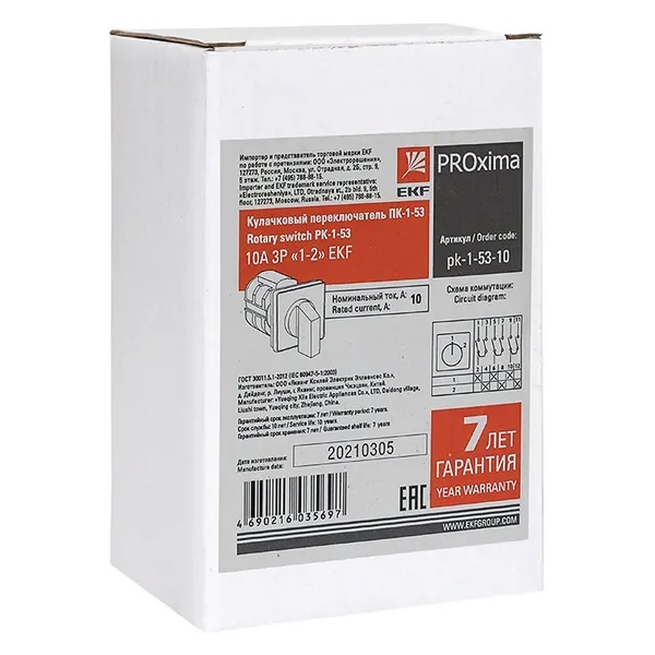 Переключатель кулачковый EKF ПК-1-53 10А 3P 1-2 IP20 pk-1-53-10