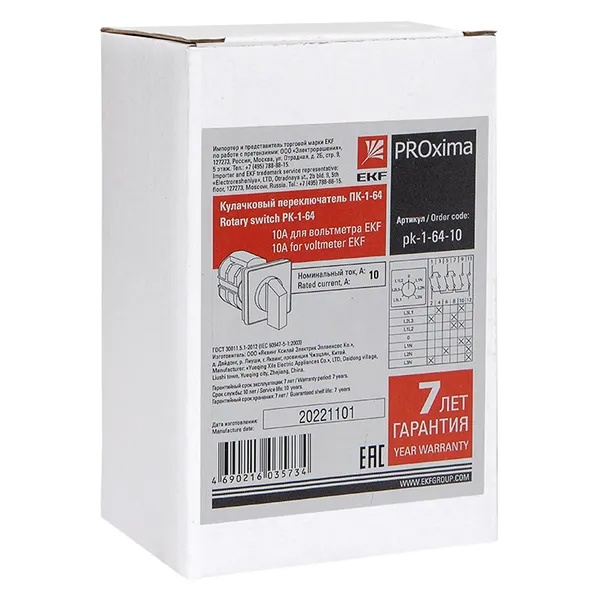 Кулачковые переключатели серии ПК EKF PROxima — это механические коммутационные устройства, предназначенные для работы в цепях переменного тока с номинальным напряжением до 400 В и частотой 50/60 Гц. Их конструкция обеспечивает надежность и устойчивость к внешним воздействиям благодаря контактам с повышенным содержанием серебра, что снижает переходное сопротивление.