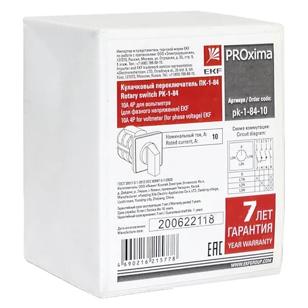 Кулачковые переключатели серии ПК EKF PROxima — это механические коммутационные устройства, предназначенные для работы в цепях переменного тока с номинальным напряжением до 400 В и частотой 50/60 Гц. Их конструкция обеспечивает надежность и устойчивость к внешним воздействиям благодаря контактам с повышенным содержанием серебра, что снижает переходное сопротивление.