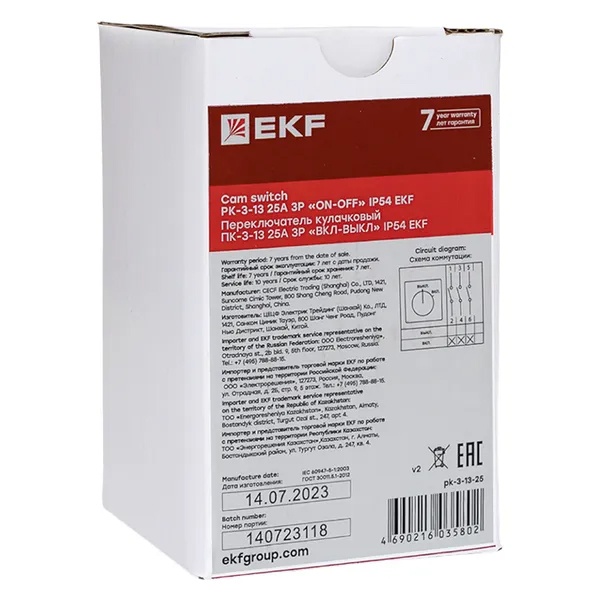 Переключатель кулачковый EKF ПК-3-13 25А 3P ВКЛ-ВЫКЛ IP54 pk-3-13-25