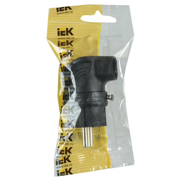 Вилка электрическая угловая каучуковая с заземлением ВБу3-1-Ом IP44 IEK PKR01-U-016-2-K02