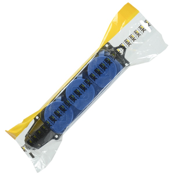 Розетка каучуковая ИЭК Омега (колодка) на три гнезда РБ33-1-0м с защитными крышками IP44, цвет синий PKR61-016-2-K07