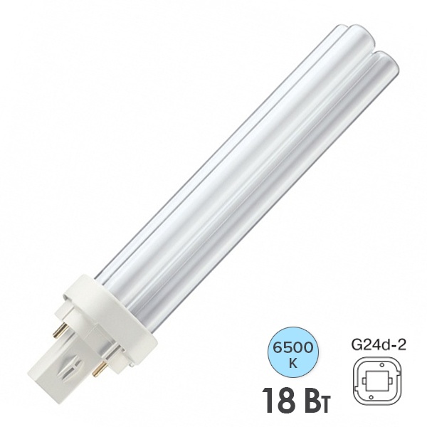Компактная энергосберегающая лампа КЛЛ мощностью 18 Вт с цоколем G24d-2 для электромагнитных ПРА (ЭмПРА) 871150063527370