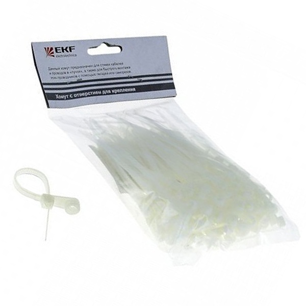 Изделие оснащено специальным отверстием, спроектированным для удобного прикрепления винта или шурупа. Благодаря этой детали, пучок проводов или кабелей, закрепленный с помощью данного хомута, легко и надежно крепится к разнообразным поверхностям, будь то пластик, дерево или другие материалы.