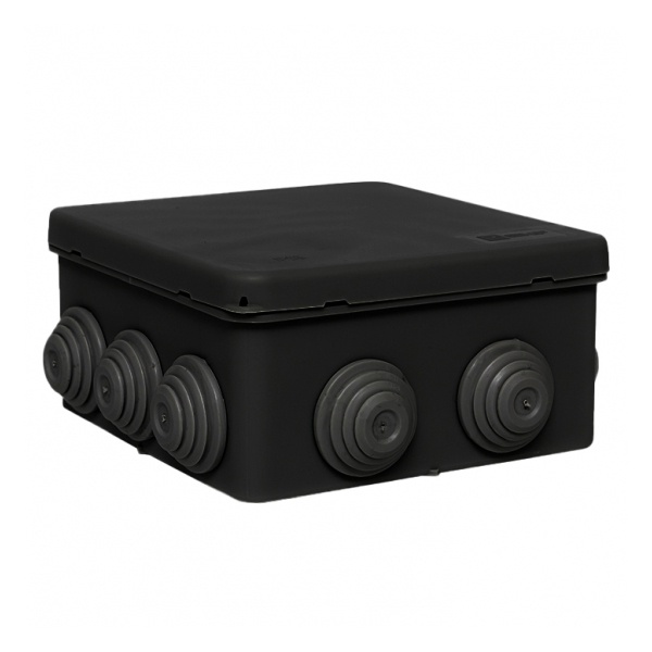 Черная пластиковая распаячная квадратная коробка наружная со степенью защиты IP55, 10 ступенчатых сальников для кабеля plc-kmr2-030-014-b