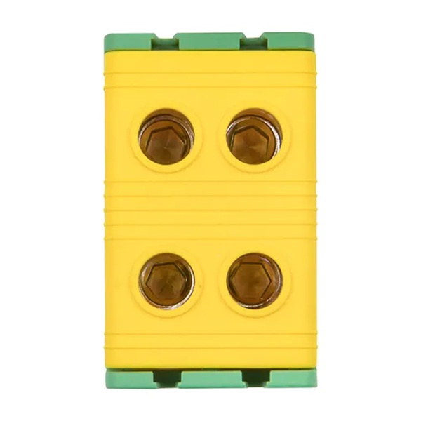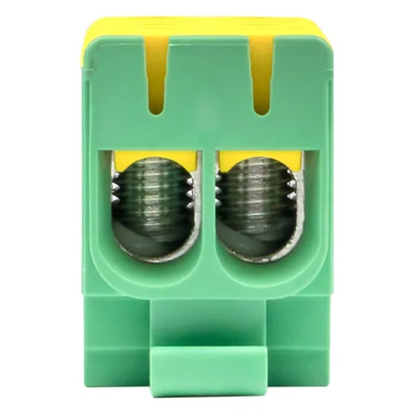 Вводной двухполюсный клеммник заземления для проводника сечением 16-95 мм2 EKF КСВ, желто-зеленый цвет plc-kvs2-16-95-y-green