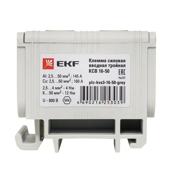 Клеммы серии КСВ EKF PROxima разработаны для надежного и удобного подключения вводных медных и алюминиевых проводников. Они поддерживают использование как одножильных, так и многожильных проводников, включая гибкие многопроволочные провода с наконечниками. Диапазон сечения подключаемых проводов варьируется от 2,5 до 240 мм2 в зависимости от размеров конкретной модели клеммы.