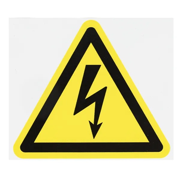 Пластиковый знак безопасности Опастность поражения электрическим током с изображением молнии на желтом фоне, размером 100*100мм pn-1-01
