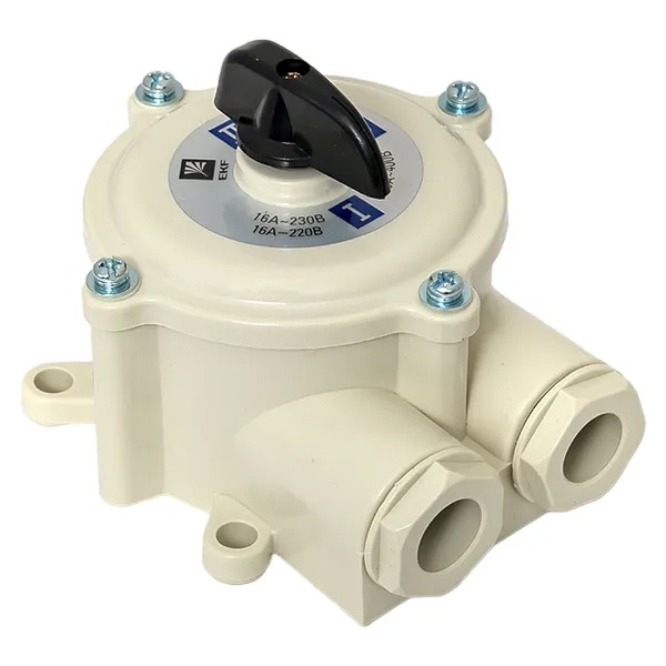 Накладной герметичный поворотный переключатель (пакетник) трехполюсный 16А, трехпозиционный ЭКФ в корпусе из пластика pp-3-16-4