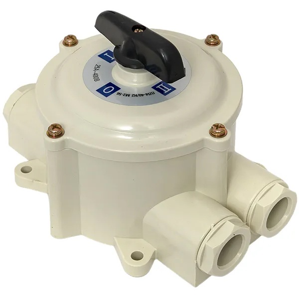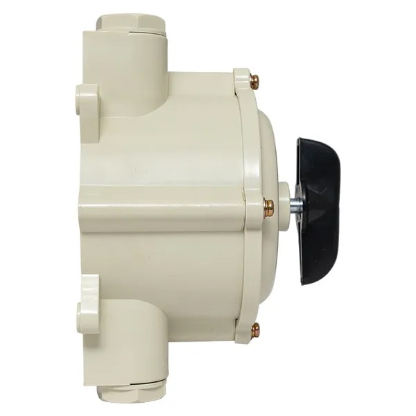Герметичный накладной поворотный переключатель (пакетник) четырехполюсный 40А, трехпозиционный ЭКФ в корпусе из пластика pp-4-40-4
