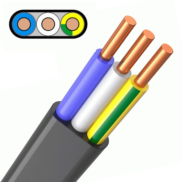 - 3х2.5 — три жилы сечением 2,5 мм²: типовой вариант под однофазные линии с фазой, нулем и защитным PE.