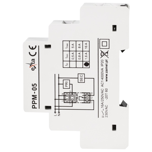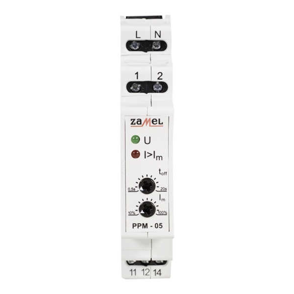 Приоритетное реле PPM-05 служит для контролирования значения тока в контуре с приоритетными и/или не приоритетными приемными устройствами. При превышении установленного значения тока, проходящего через измерительные выводы (1, 2), система отключит не приоритетное приемное устройство с установленным временным запаздыванием. Значения порога тока и времени запаздывания выключения могут регулироваться пользователем. Система может предохранять электрическую установку от перегрузки, но она не заменяет собой выключателей излишнего тока.