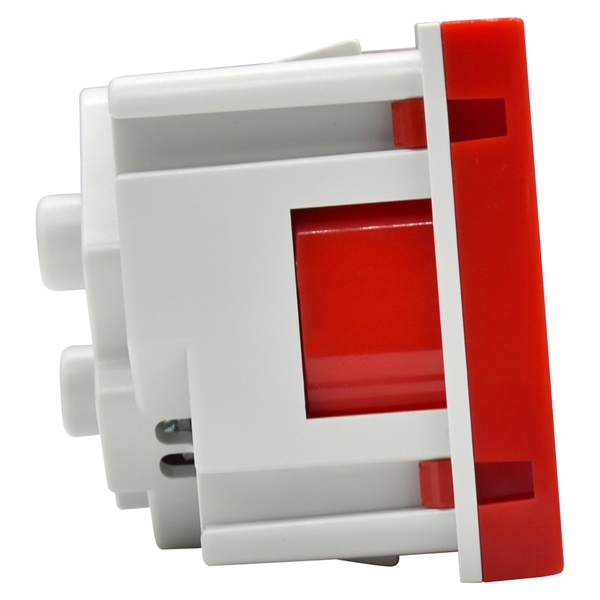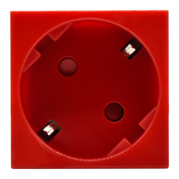 Модульная электрическая розетка 45 градусов с заземляющим контактом со шторками красная, винтовые клеммы PR-KK40D-RSZH-2-2-45-K04