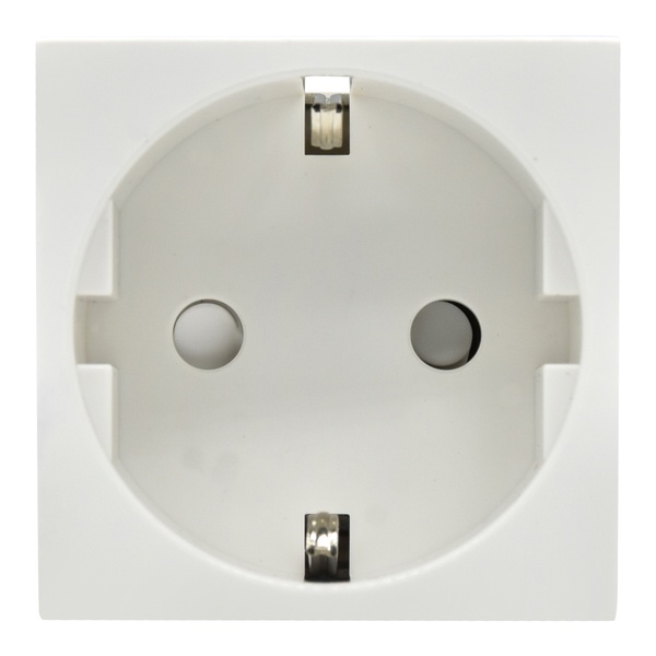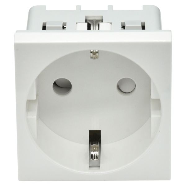 Модульная электрическая розетка с заземляющим контактом со шторками белая, винтовые клеммы PR-KK40D-RSZH-2-2-K01
