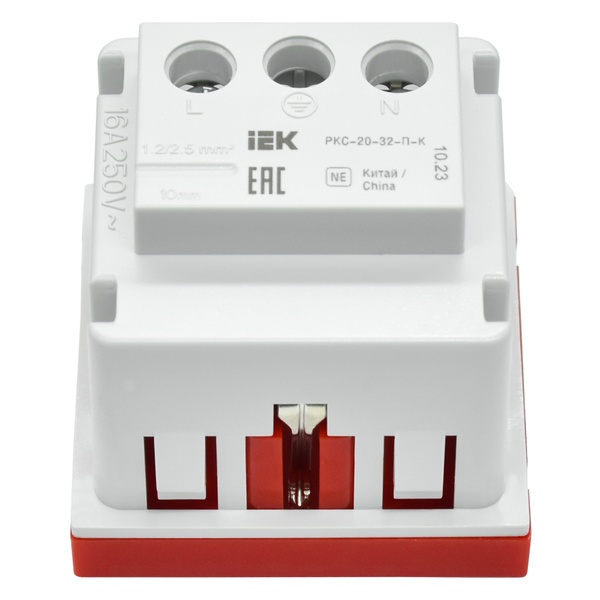Розетка предназначена для подключения электрических приборов переменного тока с напряжением до 250 В, частотой 50 Гц и номинальным током 16 А. Розетка оснащена защитными шторками и заземляющими контактами. Для подключения проводников используются винтовые зажимы на задней части розетки.