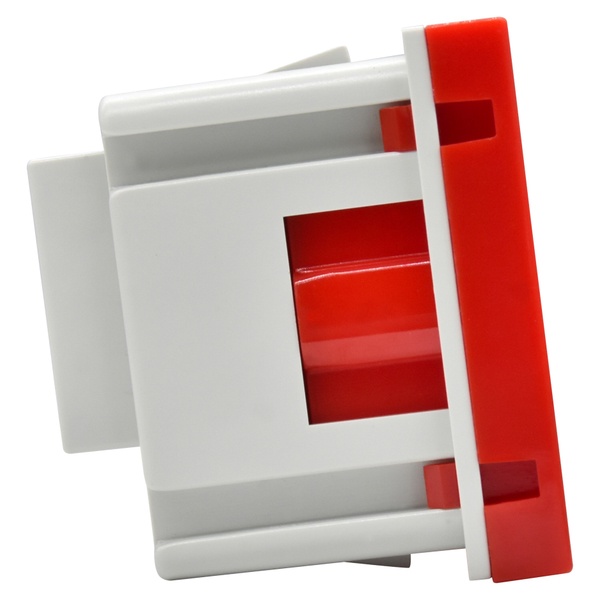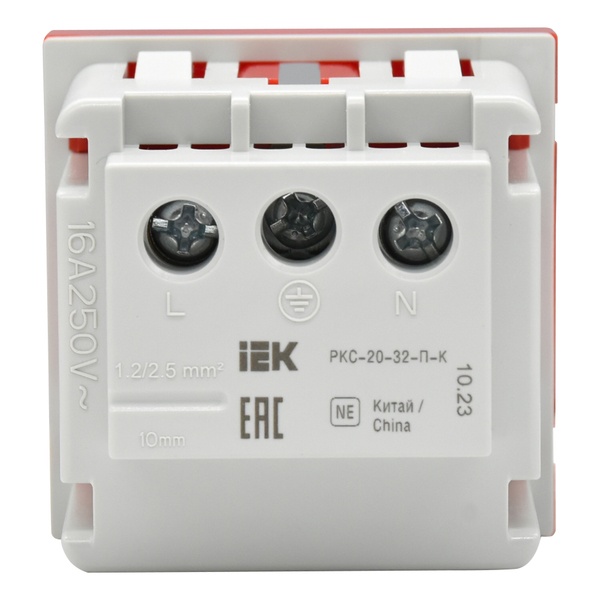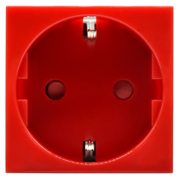 Модульная электрическая розетка с заземляющим контактом со шторками красная, винтовые клеммы PR-KK40D-RSZH-2-2-K04
