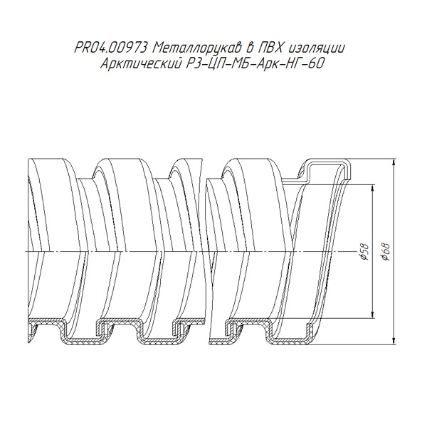 Влагозащищенный гибкий кабельный рукав Р3-ЦП-нг 60мм маслобензостойкий из оцинкованной стали в оболочке ПВХ для защиты электропроводки PR04.00973