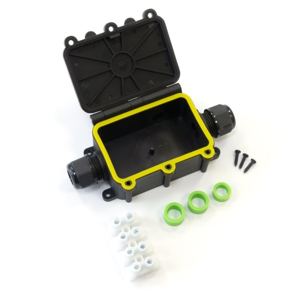 Съемная крышка облегчает монтаж и обслуживание кабельных соединений.Силиконовые уплотнительные кольца обеспечивают надежное введение кабелей различного диаметра без потери герметичности.Продуманная форма корпуса позволяет легко закрепить изделие на любой поверхности.Возможность применения в промышленности, на транспорте, в энергетике, строительстве, а также в быту.Использование распределительных коробок IP68 гарантирует надежность кабельных соединений даже в самых тяжелых условиях эксплуатации.