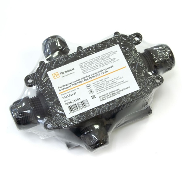 PR08.13153 Распределительная коробка Промрукав откидная крышка 4-вводная IP68 ПА66 40А 450В d3,5-12мм 131х95х37