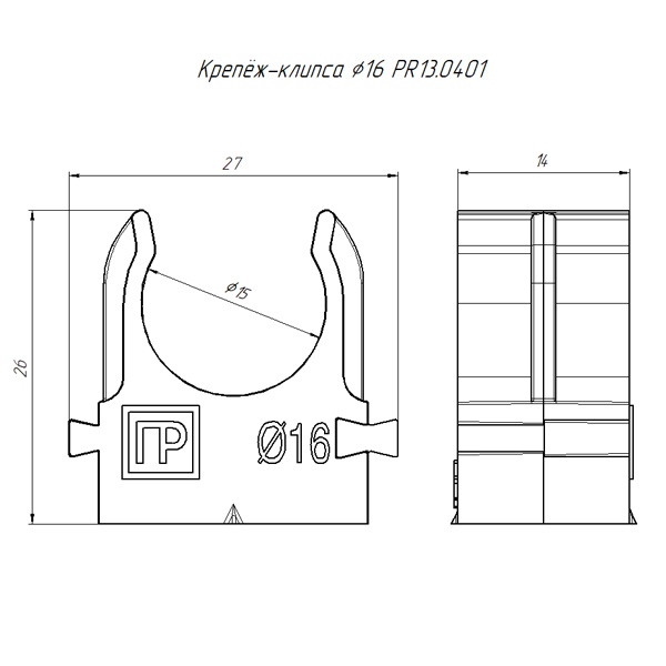 Серая атмосферостойкая клипса для монтажа труб диаметром 16 мм PR13.0401